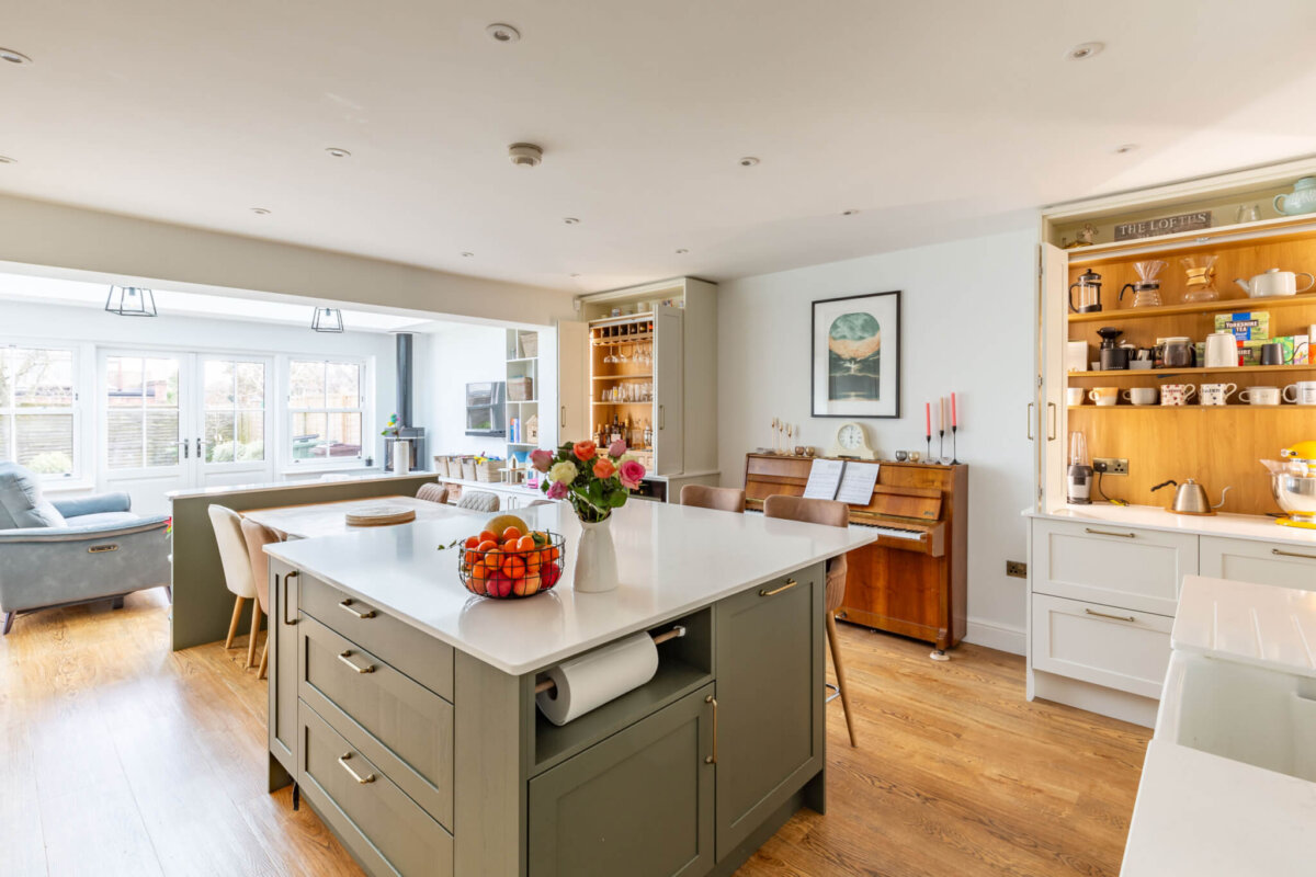 26 Feb Kitchen Island with bespoke kitchen roll holder
