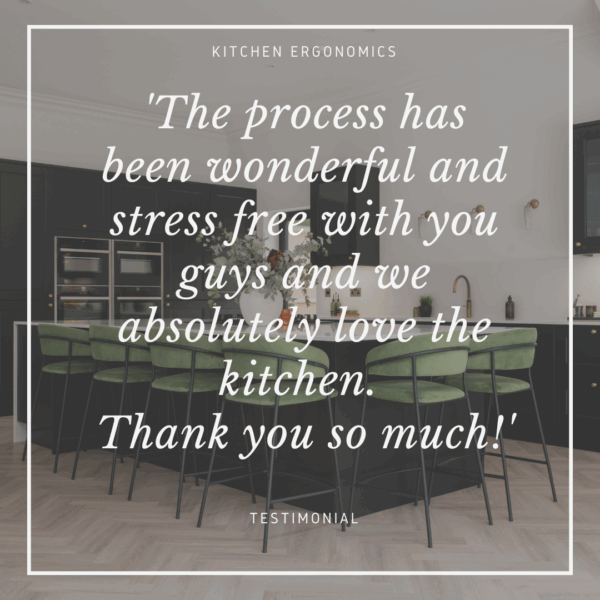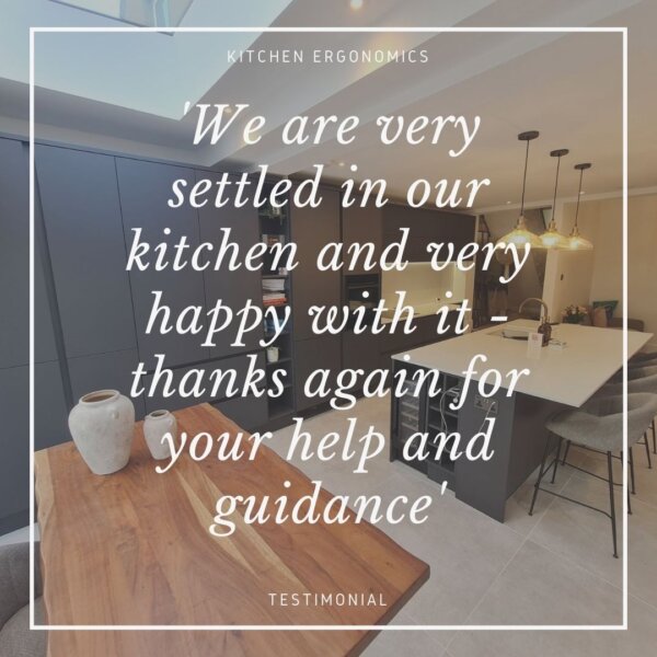 Dear Chris, I would just like to thank everyone connected with our kitchen project especially you for the advice on design to ensure we obtained maximum space utilisation and your follow up service. Many thanks and we will have no issue in recommending you or Kitchen Ergonomics to anyone who is looking for quality and service.